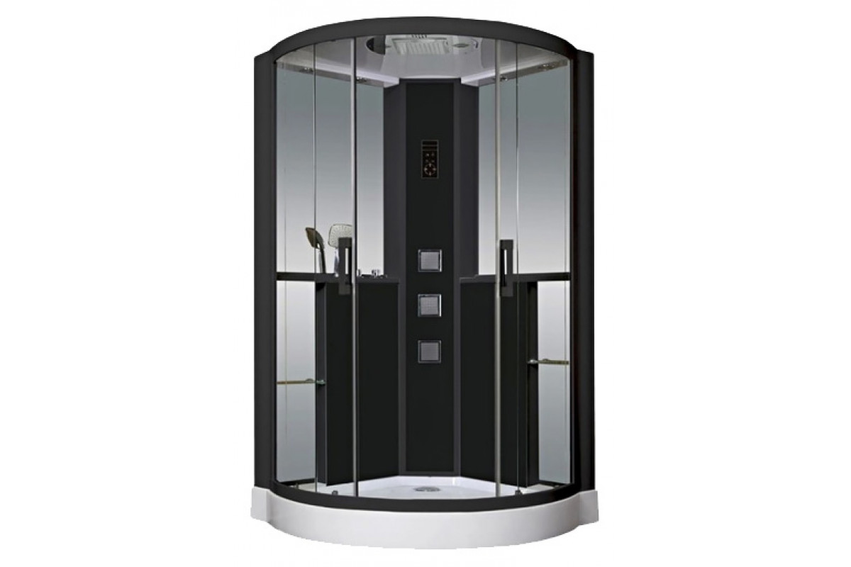 закрытая кабинаасимметричной формыстенки кабинки из стеклараздвижные двери гидромассажвстроенное рад..
