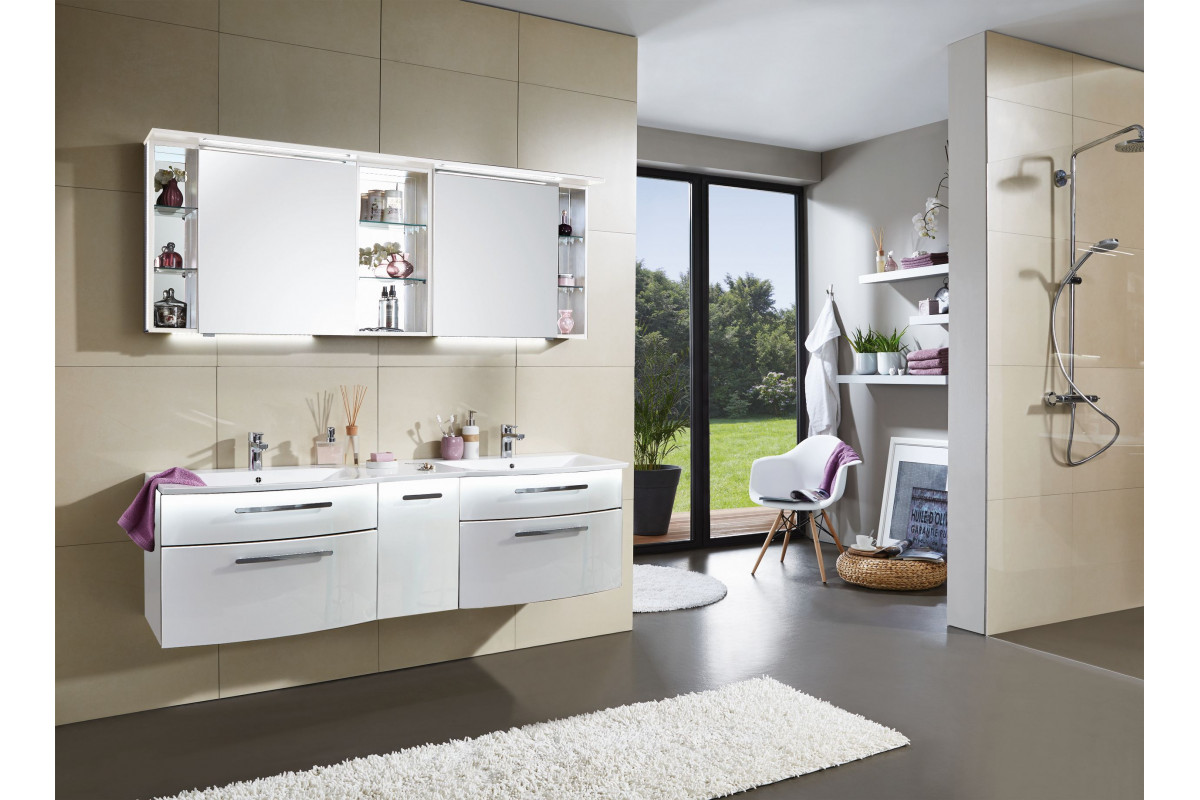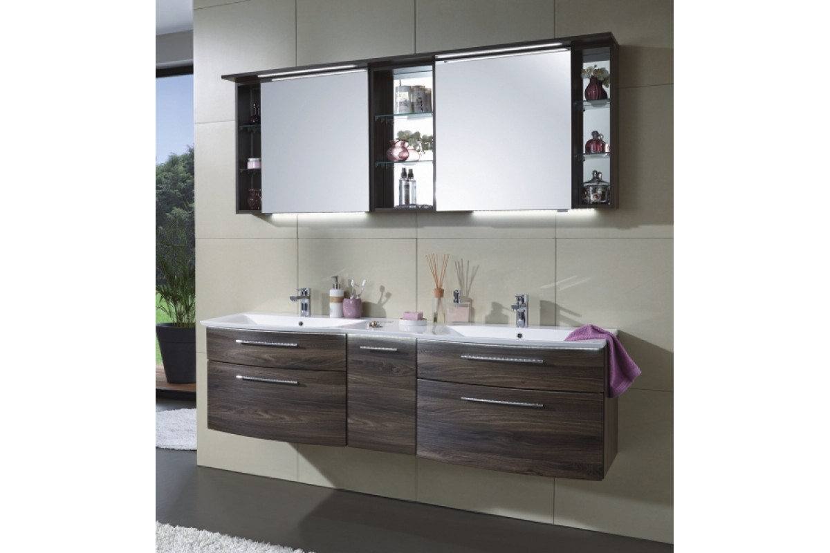 Комплектация Зеркальный шкаф (1 дверь, 3 двери). Тумба с двойной раковиной .