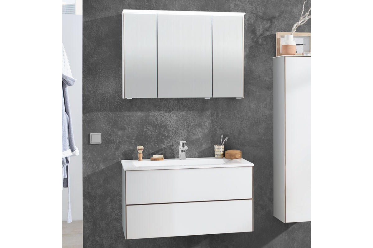 Подвесной комплект мебели для ванной, шириной 90 см, ящики выдвижные - 2 шт, зеркальный шкаф с подсв..