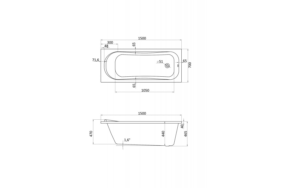 Акриловая ванна Laval Lotus 150x70