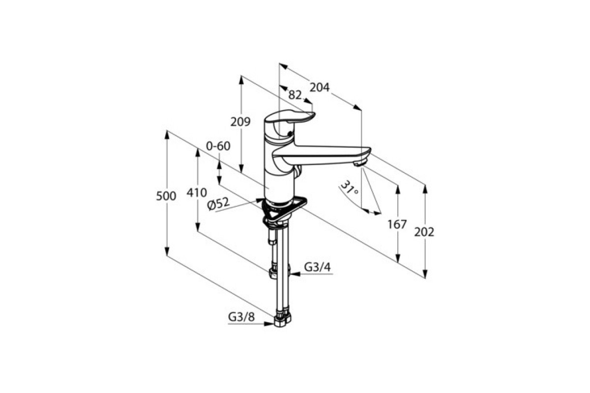 Излив длина 204 мм, высота 167 мм