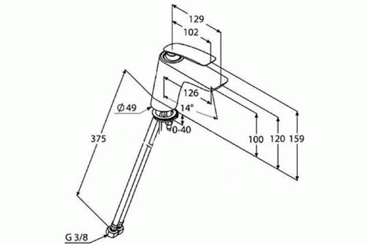 Излив длина 126 мм, высота 100 мм